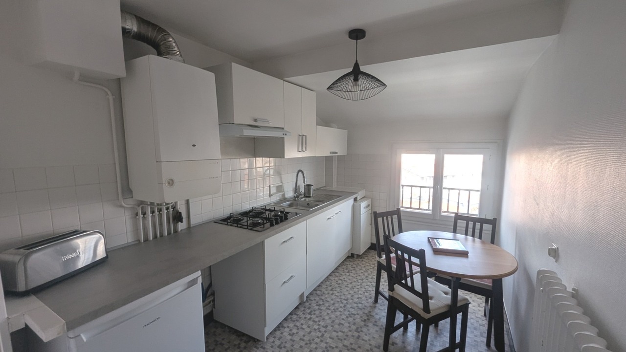 Au sein d'un immeuble avec ascenseur, T2 meublé, idéal étudiant, proche des facultés et commerces (avenue Léon Blum). Cet appartement se compose d'une entrée, d'une cuisine aménagée et équipée (frigo, hotte, four et vaisselle), d'un séjour, d'une chambre et d'une salle de bains avec WC.