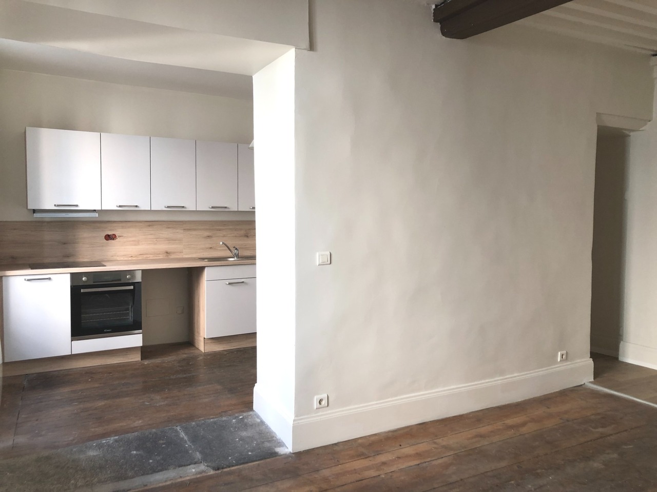 T3 rénové, situé en plein centre ville proche du tram (rue des chaussetiers). Cet appartement est composé d'une entrée, d'un salon-séjour semi-ouvert sur une cuisine neuve aménagée et équipée (four, hotte, plaques, frigo), de deux chambres, d'une salle de bains et d'un WC séparés. Cession de bail possible à partir de fin septembre !!