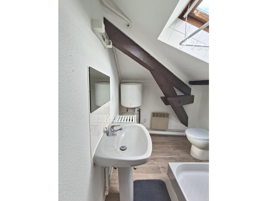 Studio mansardé d'une superficie de 15m² au sol, rénové et idéalement situé en plein centre-ville (rue Lamartine), à deux pas de la Place de Jaude et du tram. Cet appartement est composé d'une pièce principale (avec lit, table, armoire), d'un coin cuisine équipée (plaques, frigo, micro-ondes, vaisselle) et d'une salle d'eau avec WC.