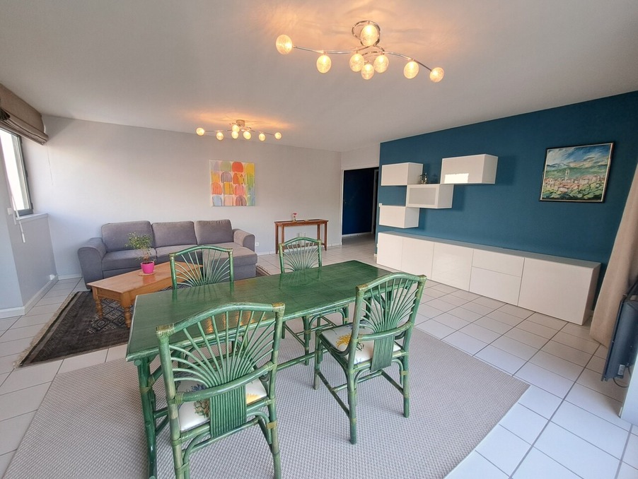 Cet appartement de 102 m² se compose d'un vaste séjour avec terrasse exposée Sud et balcon, d'une cuisine aménagée et équipée, de deux chambres (possibilité trois), d'une salle de bains et d'une salle d'eau. Un garage double en sous-sol et une cave complètent ce bien.